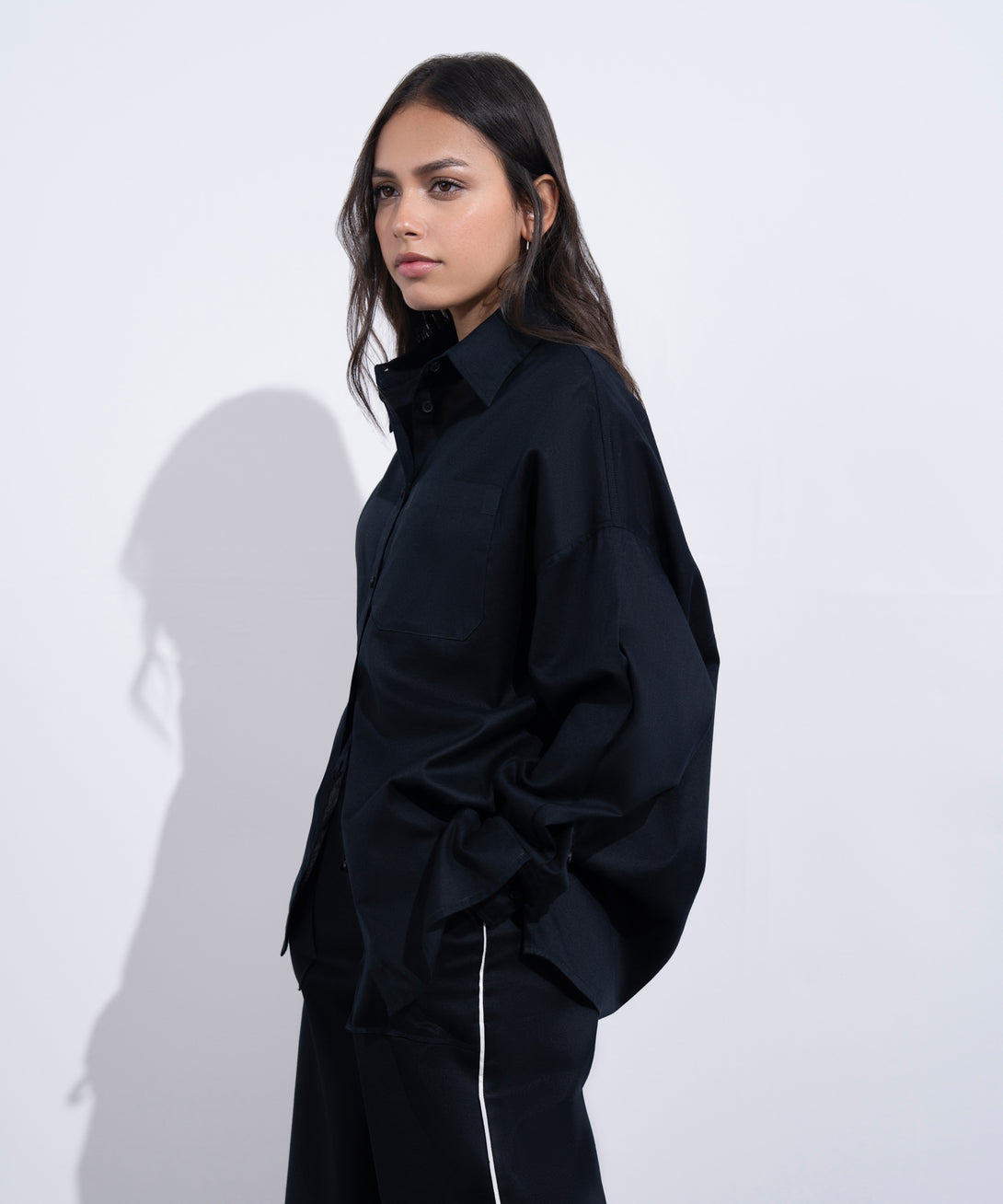 Linen blend shirt with collar and long sleeves. Side slits, patch pocket and back yoke.